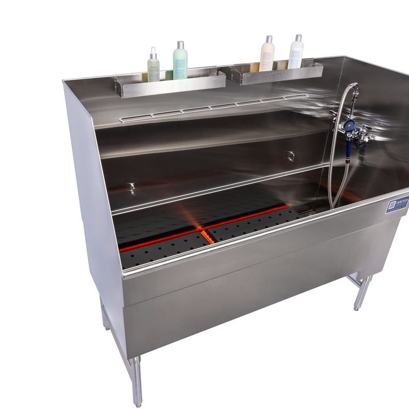 Enhance the versatility of your tub by adding the Elevating Platform System (sold separately). Includes two platforms with comfort mats that can be used to bridge across at a higher level inside the tub. Smaller animals can be bathed at a level comfortable for both the pet and the person doing the bathing.